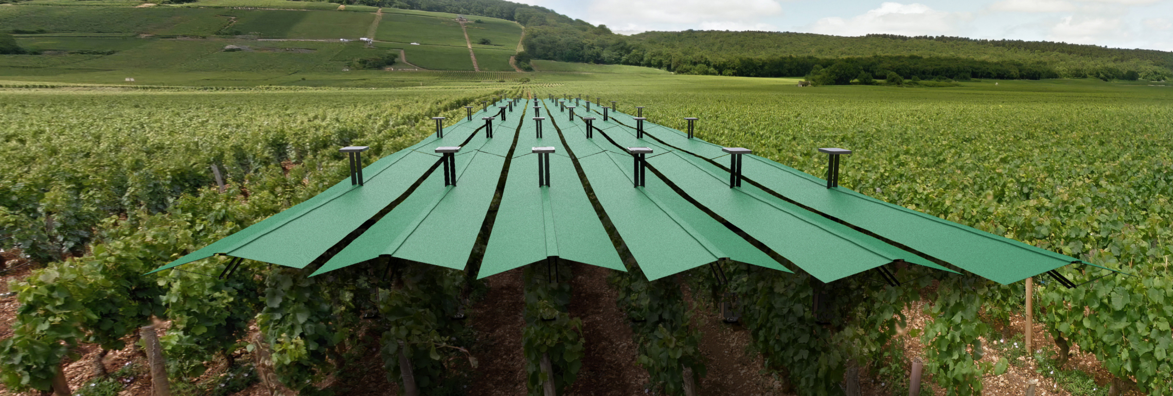 En 2024 et en 2025, BIENESIS a déployé ses Canopées sur 4 parcelles en Bourgogne et dans le Beaujolais, dans le cadre d’un protocole expérimental suivi par l’Institut Français de la Vigne et du Vin (IFV+) et la Chambre d’agriculture de la Côte d’Or.